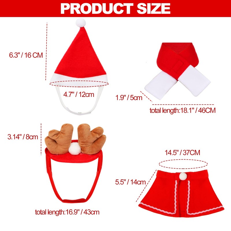 - Neues Kostüm: Dieses Weihnachtskostüm hat eine rote Weihnachtsmannmütze, einen modischen Umhang, einen warmen Schalkragen und eine niedliche Rentier-Kopfbedeckung. Mit diesem neuen Kostüm zur Weihnachtszeit wird Ihr Haustier noch schöner und attraktiver.
