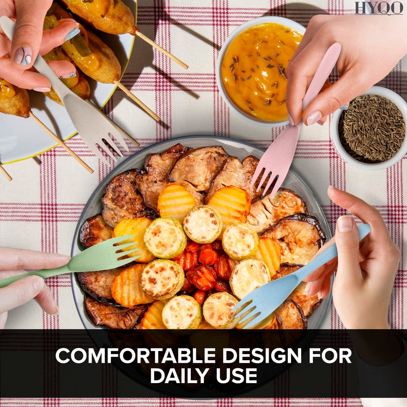 - 🍴 Easy to Use: This wheat straw silverware set with organizer will be the perfect solution for dining out and for those who live an active lifestyle. These plastic utensils comes in handy during a picnic by the lake, hiking in the forest and outdoor eating.
