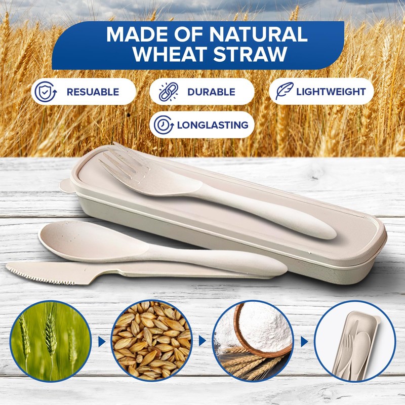 - 🍴 High Quality: This travel silverware set with case is made of wheat straw starch and PP material that is such an excellent combination of utensil sets which can be used multiple times and easy to store and carry anywhere on the go.
