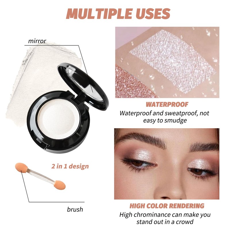 1.This white eye shadow color has a delicate texture and soft touch. It is smooth and does not stick to powder when applied. The delicate texture of white eyeshadow single makes it easy to color without drying or peeling.