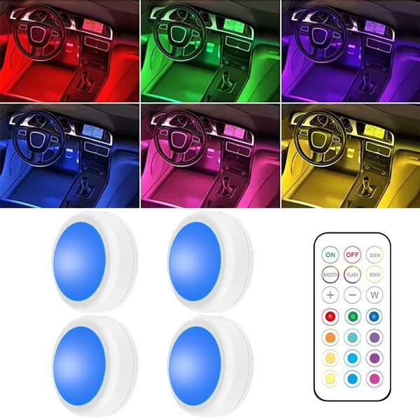 4PCS Wireless LED Interior Car Lights with Remote Control, Ambient Lighting Kits, Car Neon Lights with Rechargeable Battery,Last for More Than 10 Hours Lighting