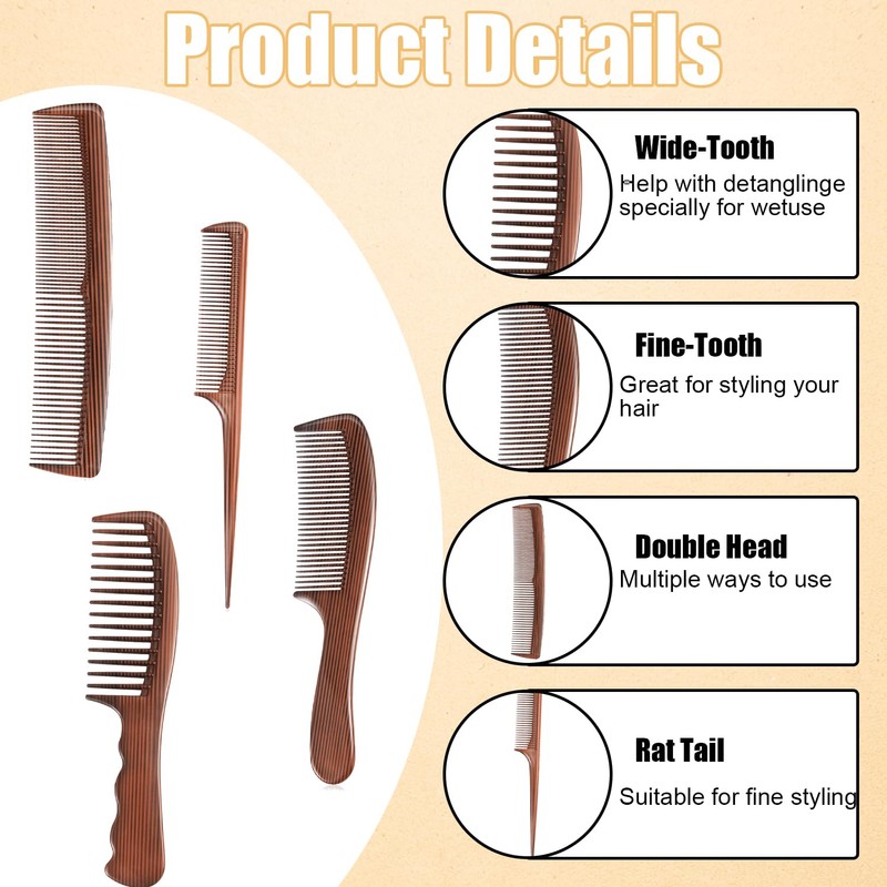 - 【Complete Tools】Our comb set includes a wide-tooth comb, fine-tooth comb, rat-tail comb, and double-sided comb, perfect for a variety of hairstyles. It meets all your daily grooming needs for both hair combs for men and comb set for women.