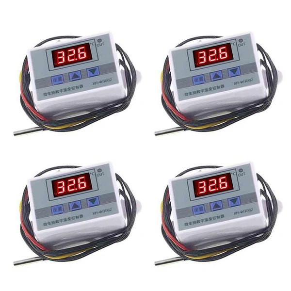 - 4PCS XH-W3002 10A Microcomputer Digital Temperature Controller Digital Display Thermostat Control Switch with NTC 10K Thermistor Sensors Digital Temperature Probe