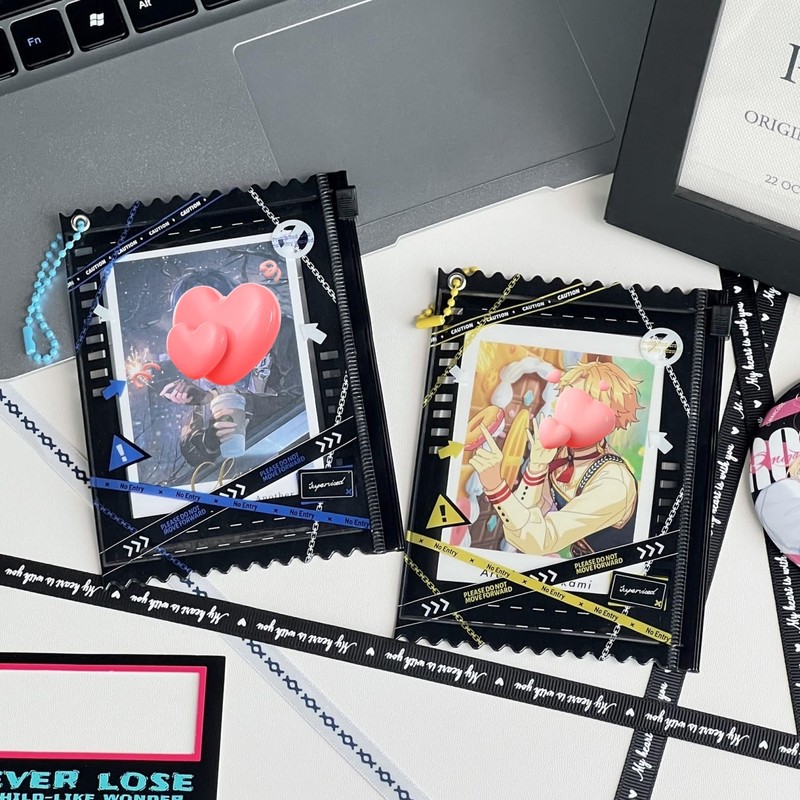 - Kawaii CAUTION Design: Featuring a cute CAUTION-themed print, this mini pouch adds a unique touch to your collection. The eye-catching design makes it a fun and stylish way to display Kpop photocards, ID badges, or small keepsakes, perfect for fans and collectors alike