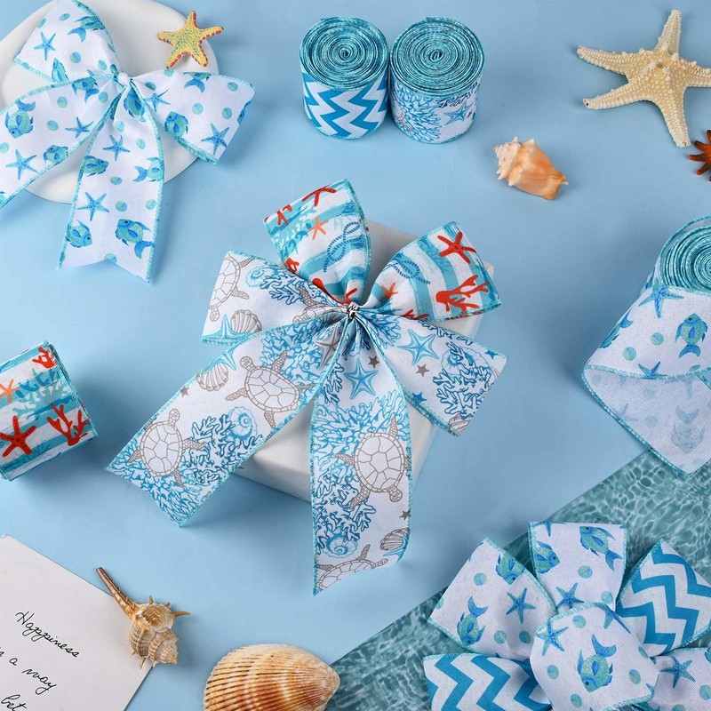 • Fresh Style:Our ribbons are designed with coral reefs, seashell,fish and starfish, our ribbons are mainly in blue,eye-catching, vivid and full of fresh, which will meet your holiday needs for decoration and crafts making.