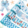 4Rolls 20 Yards Ocean Themed Wired Edge Ribbon Blue Coral Starfish Waves Patt...