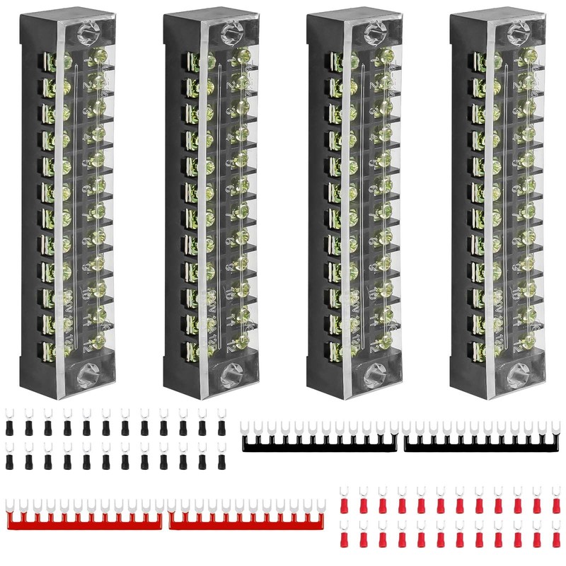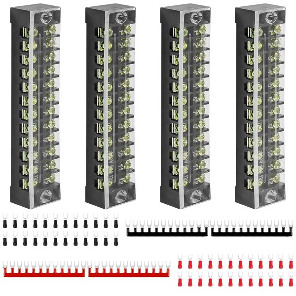 4sets 12 Position Electrical Terminal Block Strips,Dual Row Screw Terminals Strip with Fork Wire Connectors for Wiring
