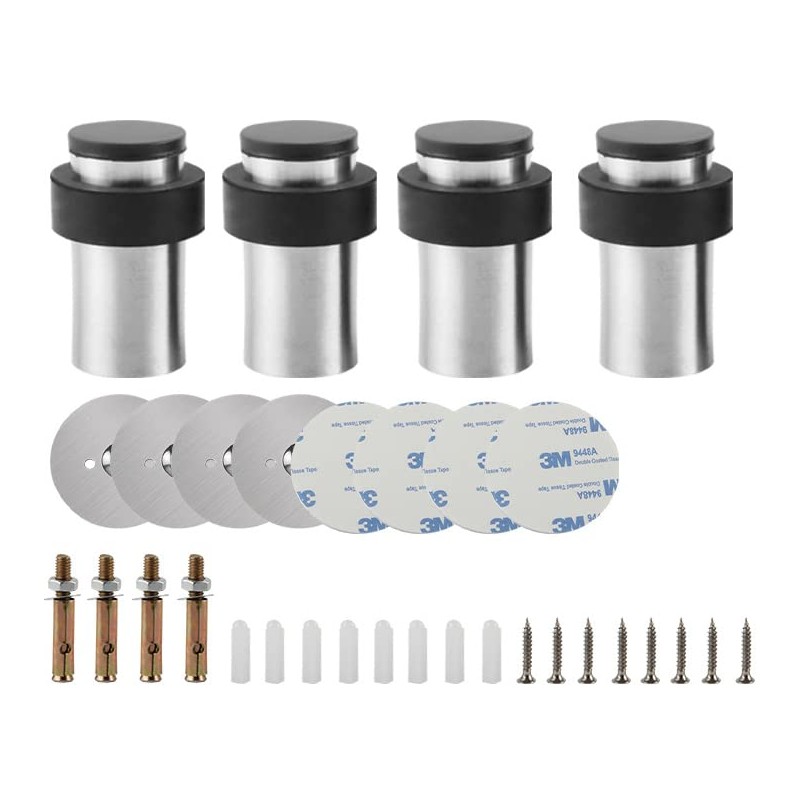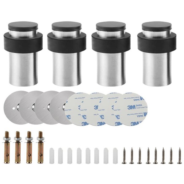 4Sets Stainless Steel Door Stop,Cylindrical Floor Mount Doorstops with Rubber Bumper Decorative