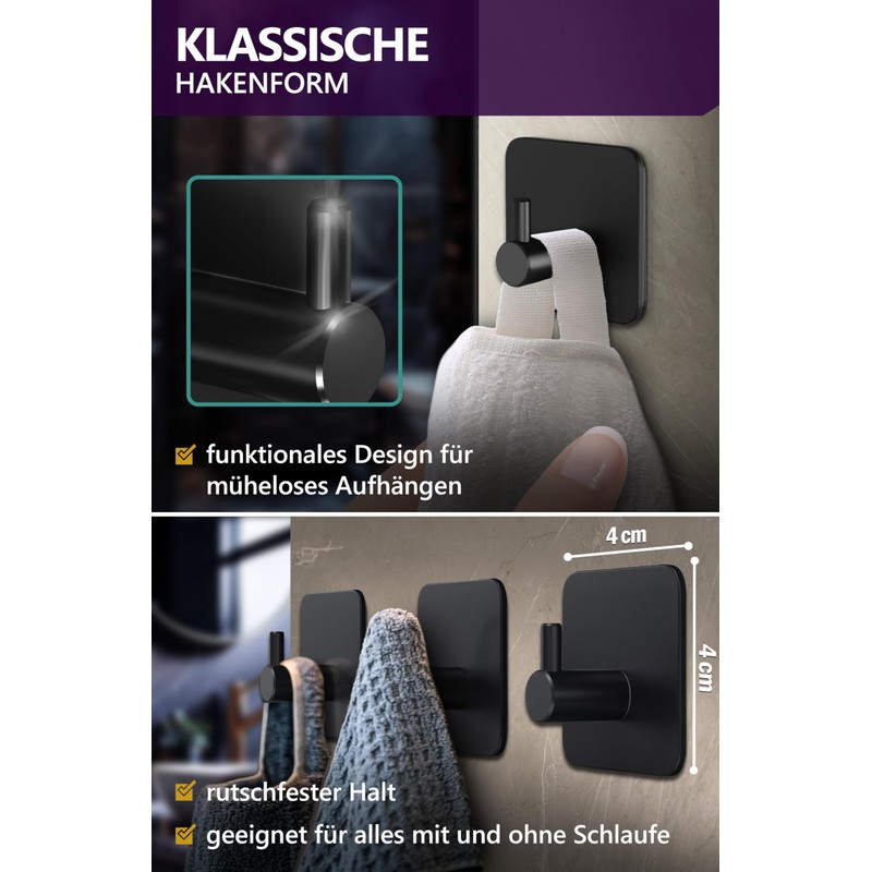 - Hold securely – classic, functional adhesive hooks black ensure effortless hanging and removal of all bathroom accessories such as towels or bathrobes; whether with or without hanging loop, everything stays securely and neatly in place
