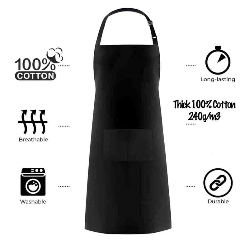 - 100% Cotton: Made from 100% natural and tight weave cotton, 4sold aprons are soft and comfortable to wear; as the cotton fabric is also known for its durability to withstand frequent washing and use, 4sold 100% cotton aprons can last for years.