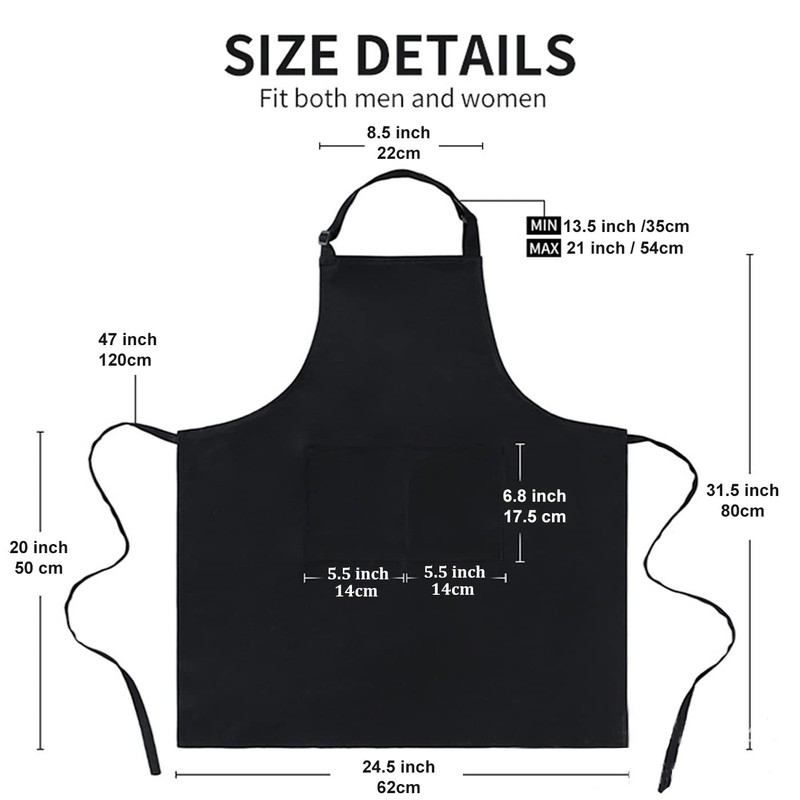 - Wide coverage: Measuring 120cm in length, 4sold bib aprons are ingeniously crafted to provide remarkable coverage from the chest down to the waist and thighs. With this wide coverage, they effectively safeguard the wearer's clothing, making them ideal for baking, gardening, cleaning, and cooking