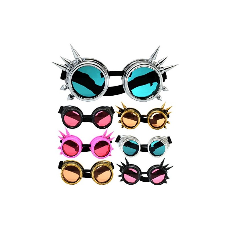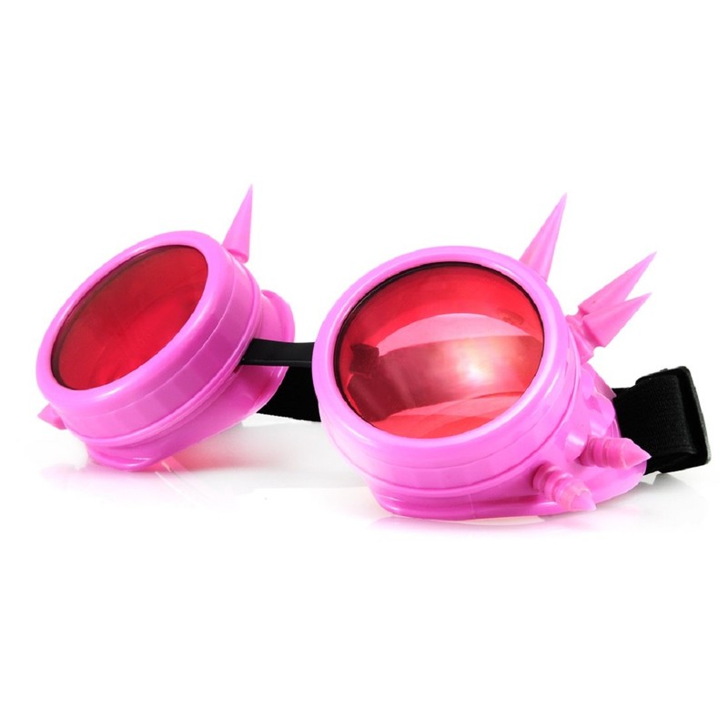 4sold (TM Cyber Goggles Black with Cyber Spikes Steam Punk Rave Goth like Sunglasses Includes FREE set Lense Design Inserts and 3 lenses black. clear and brown (pink)