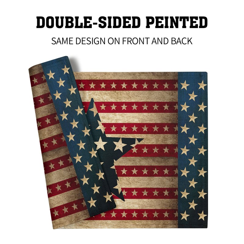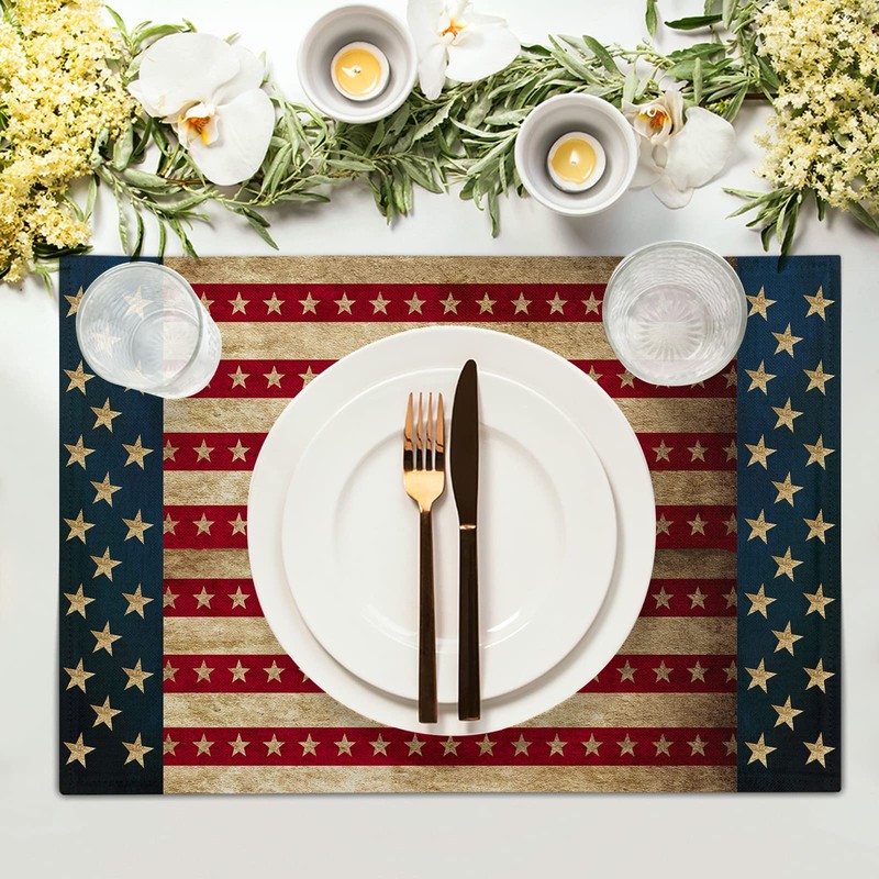 4th of July Linen Placemats Set of 4 Independence Day Patriotic American Flag Star Non Slip Heat-Resistant Washable Wipeable Table Place Mat Tablemat for Kitchen Dining Table Home Decoration 12" x 18"