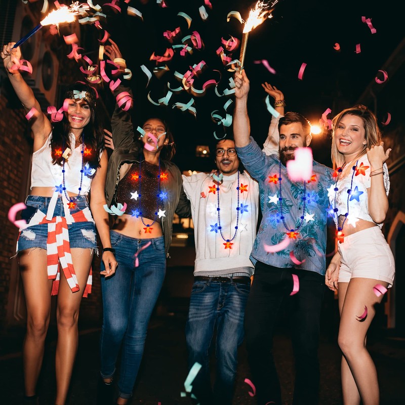 Wear it to enjoy a happy holiday atmosphere and light up the American night with the red, blue, and white necklace!
