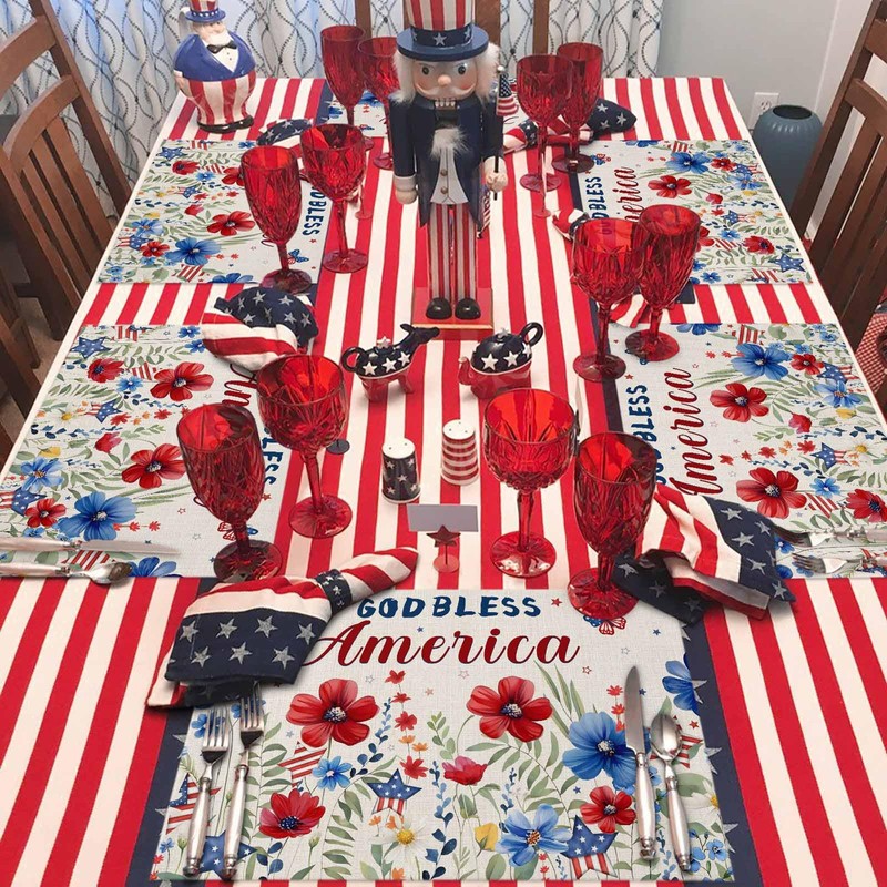 • Practical & Fashionable: The Memorial Day placemats are ideal for home use, kitchen, dining table, bedroom decoration. These table placemats are also great gifts. The placemats can be used indoors and outdoors to meet your different needs, perfect for any party, family gathering, feel the festive atmosphere.