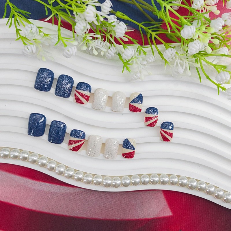 - Long-lasting effect: You can use glue stickers we give you stars glue on nails. If you want the red white blue acrylic nails to last longer, you can prepare the liquid nail glue yourself, and the effect can last for 1 week