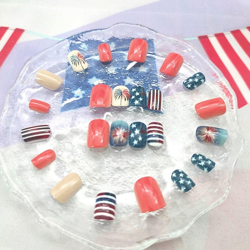 - Easy to use: After trimming and cleaning your natural nails, choose the right size, stick on nails our gifted jelly glue on your nails, and nails press ons your for 10 seconds. with just a few simple steps, you can have beautiful cute independence day nails