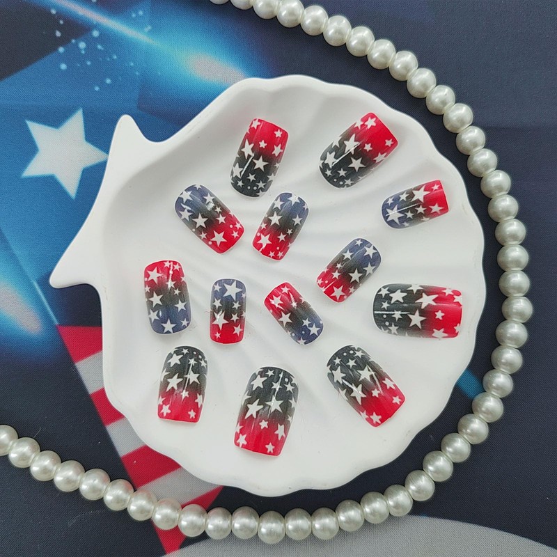 - Long-lasting effect: You can use glue stickers we give you stars glue on nails. If you want the red white blue acrylic nails to last longer, you can prepare the liquid nail glue yourself, and the effect can last for 1 week