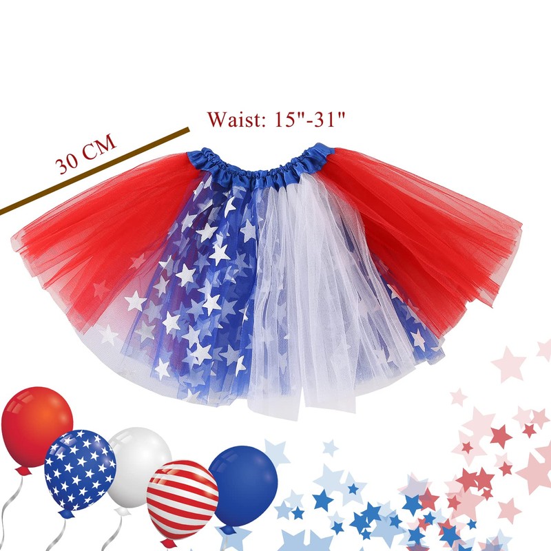 - 【Fourth of July Independence Day Tutu Skirt for Girls】One Size Fit More, Comfortable fit suitable for 3-10 Years old girls, and it is see through design without satin lining.
