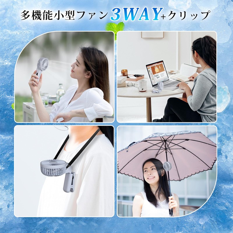 ハンディファン クリップ 日傘 携帯扇風機 【4WAYクリップ/手持ち/卓上/首掛け】 強力 ミニ扇風機 静音 風量3段階調整 小型扇風機 Type-C急速充電 持ち運びに便利 熱中症 暑さ対策 オフィス スポーツ観戦 花火大会 父の日ギフト 日本語取扱説明書