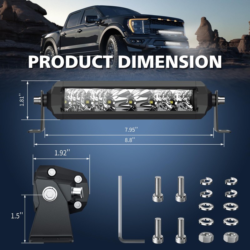 - 【Designed in USA】Latest innovation, screwless design makes the light neat and unique. Equipped with high end LEDs. The advanced spot and flood beam combo provides a wider and farther range to improve the driving safety.