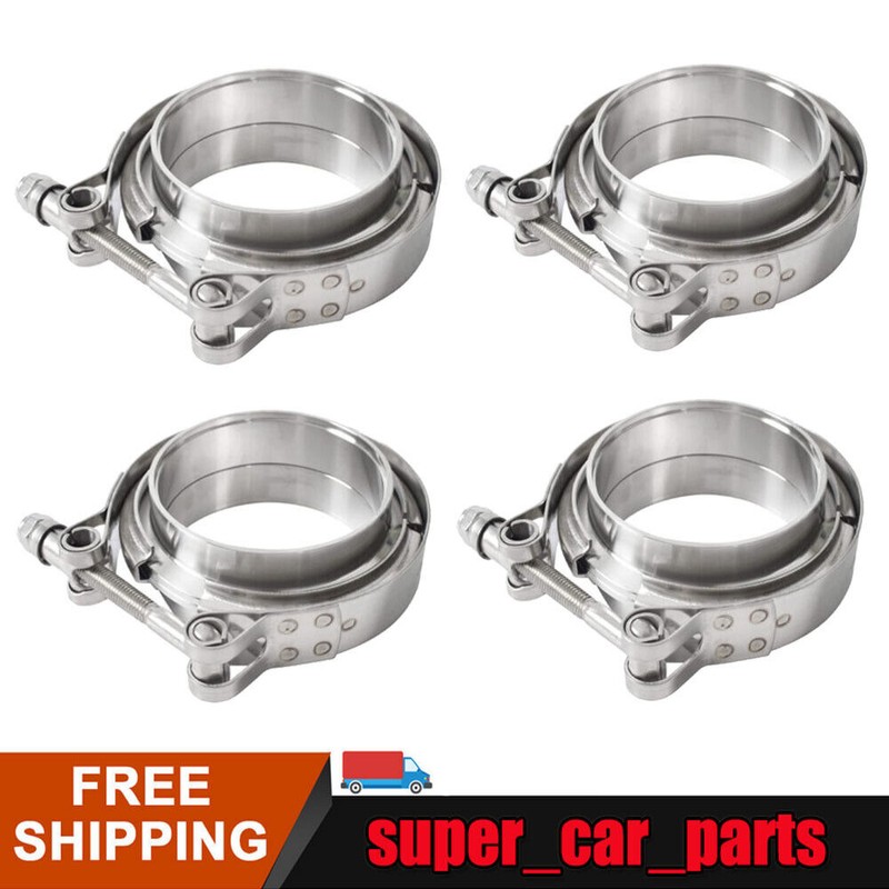 4X 3inch Stainless Steel V-Band Clamp & Flange Kit for Muffler Exhaust Downpipe