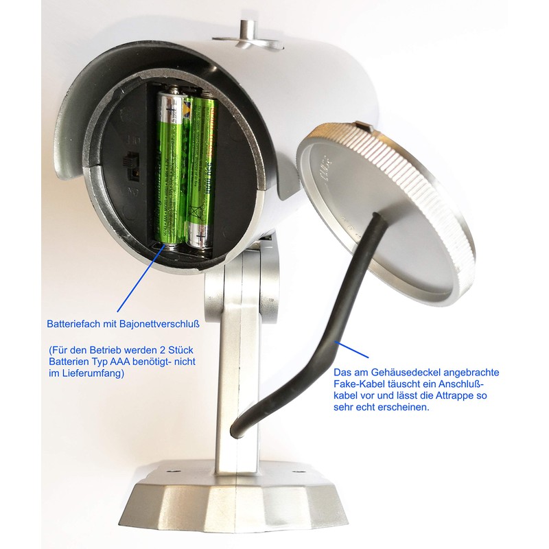 - Very deterrent with lens and flashing LED and motion sensor including mounting material