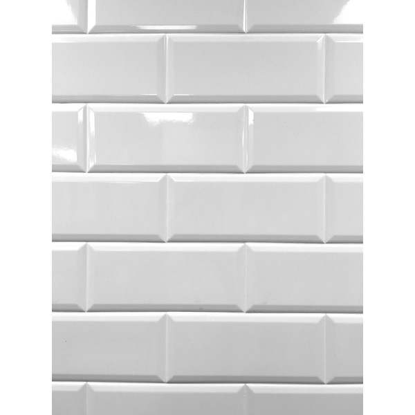 4x10 White Glossy Finish Beveled Ceramic Subway Tile Shower Walls Backsplashes (1 Piece)