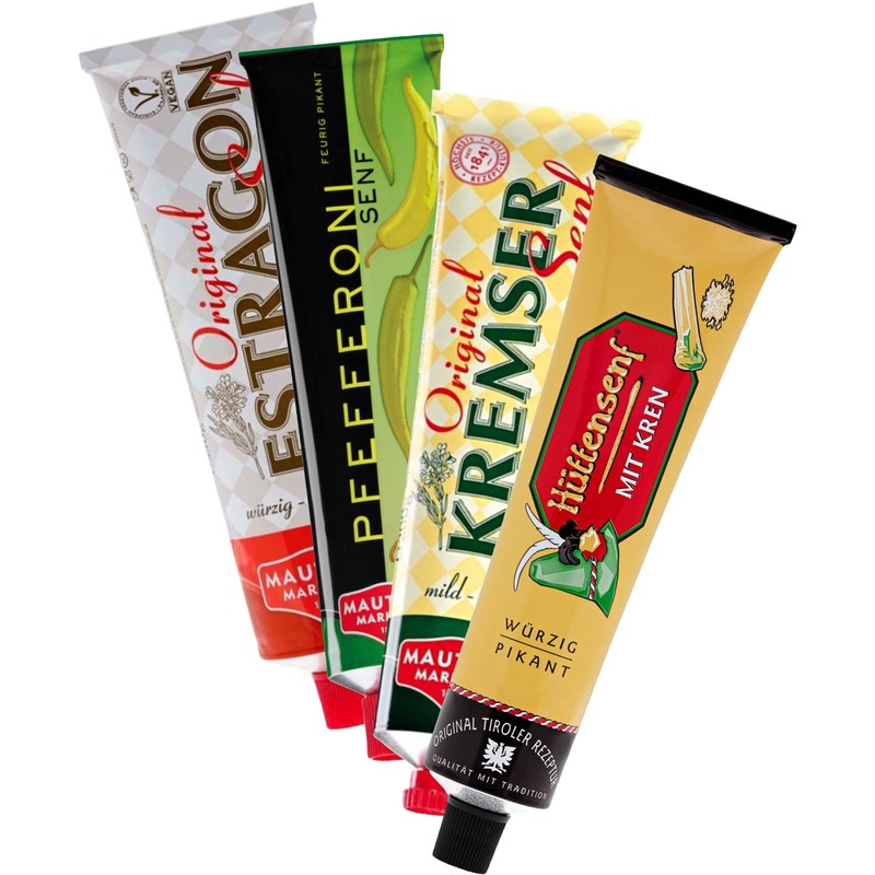 4x200g Mautner Mustard Variety - Kremser - Tarragon - Markhof Hut - Pepperoni/Austria