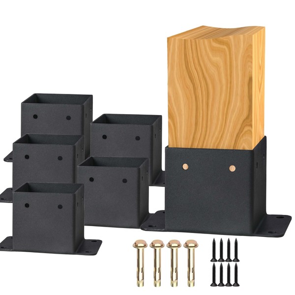 4x4 Post Base, Inner Size 3.6"x3.6" Post Base Brackets, Heavy Duty Powder-Coated Post Anchor Matte Black Wood Post Brackets for Pavilion Deck Railing Support Deck Base Plate (6 Pack)