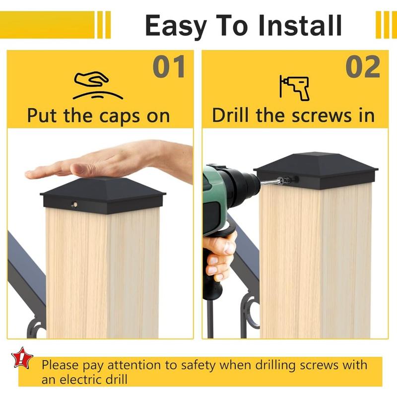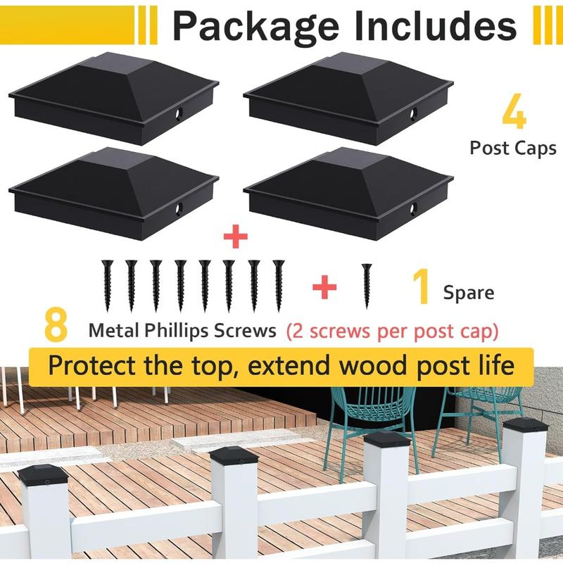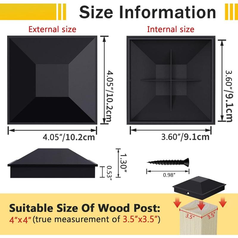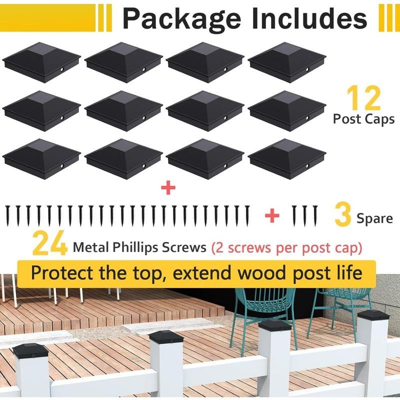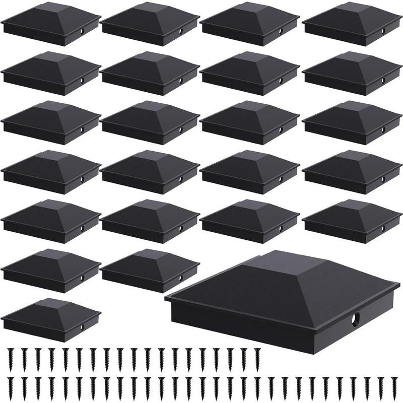 4x4 Post Caps Black(Actual 3.5" x 3.5"), 4 Pack Fence Post Caps with 8 Screws and Easy Installation, Sturdy Waterproof Plastic Deck Post Caps with Frosted Finishing Touch, Protect Wood Post - Package Quantity: 24