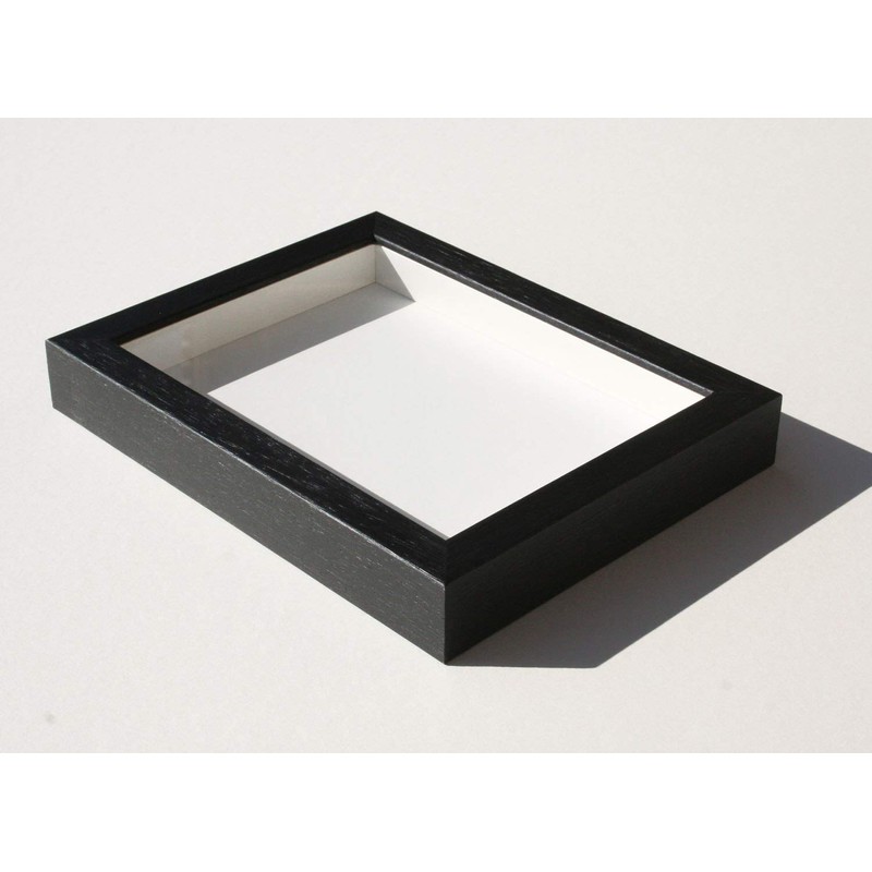 Classic one inch wide black shadowbox wood frame with interior dimensions of 4 x 4 inches. Includes Framers grade acrylic front and handing hardware. Featuring an acid free backing and interior to help protect your photos and keepsakes.