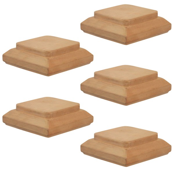 4x4 Traditional Flat Wood Post Caps (5-Pack) - One-Piece Miterless - Fence & Deck Protection (5, 3-1/2")