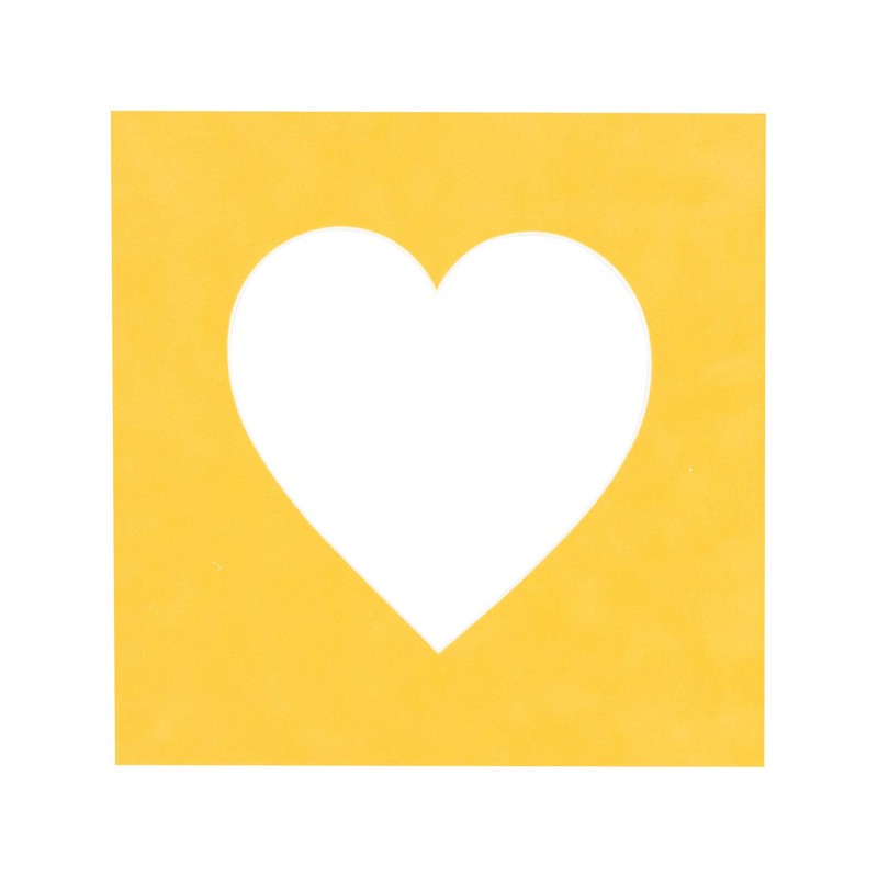 4x5 Mat For 7x7 Frame - Precut Bright Yellow Heart Shaped Photo Mat Board Opening - Acid Free Matte and Bevel Cut for Family Photos, Pack of 1 Matboard Show Kit With Acid Free Backing & Clear Bag