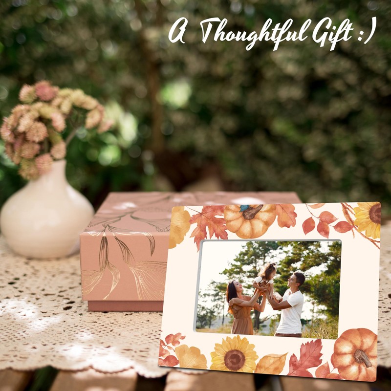 4X6" Autumn Maple Leaf Photo Frame With A Wood Stand Behind- Fall Themed Decor with Pumpkin Sunflower Leaf Print- Thanksgiving & Autumn Decorations, Cozy Fall Gift Idea (Horizontal)- A35