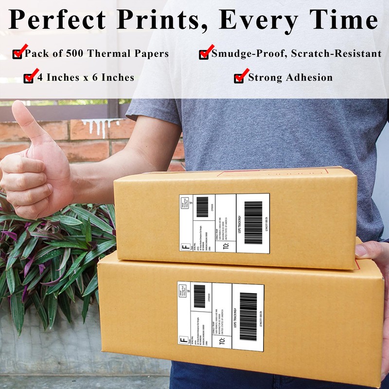 - Abundant Supply at Your Disposal –– These 4x6 thermal labels come in a pack of 500! Our thermal labels are a game-changer for shippers, small business owners, and anyone shipping packages. This pack of 500 thermal paper label stickers offers an economical solution for your shipping needs, reducing the cost per label compared to smaller packs or individual sheets