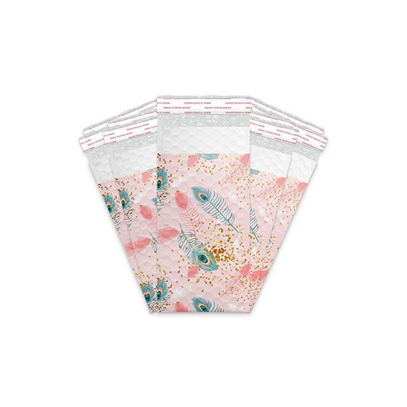 4x8 (20pcs) Pink Peacock Designer Self Seal Poly Bubble Mailers Shipping Envelopes Padded Bags