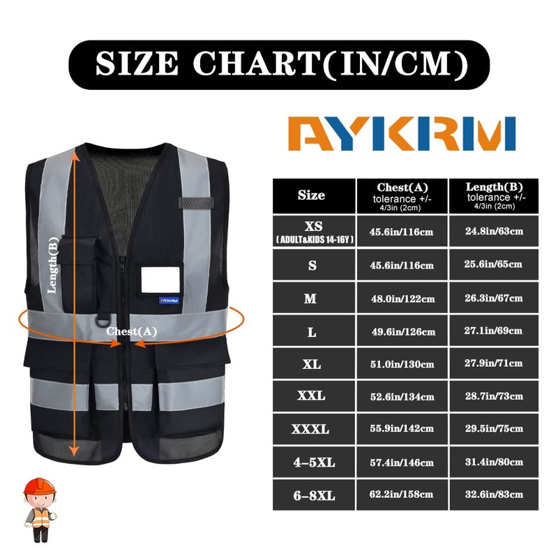 - 【SIZE】Hi vis vest SIZE: Our safety vest size chart is based on regular body shape. If you need a loose fit, it is recommended to buy 1-2 sizes larger。