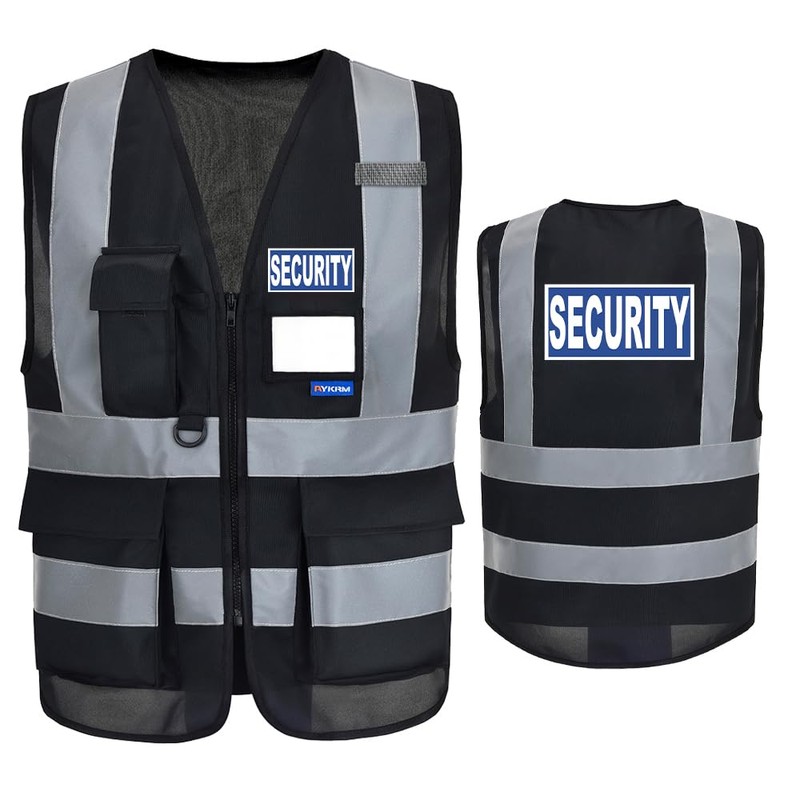 4XL 5XL Black SECURITY Hi Vis Vests Black SECURITY High Visibility Safety Vest 4XL 5XL SECURITY Black High Vis Vest with zipper pocket