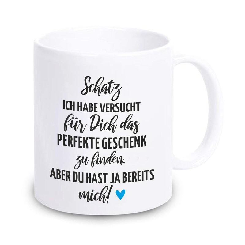 - ✅ Romantisches Design für den Lieblingsmenschen: Diese charmante weiße Tasse präsentiert stolz den liebevollen Spruch "Schatz, ich habe versucht für dich das perfekte Geschenk zu finden, aber du hast ja schon mich". Ein ideales Präsent für Geburtstage, Jahrestage, Valentinstag oder einfach so, um Liebe und Wertschätzung auszudrücken.