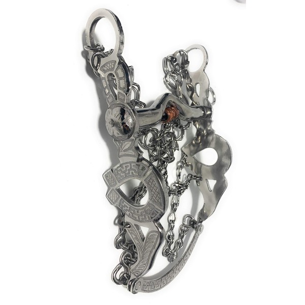 Beautiful Mexican Horse bit. Complete with stainless steel chain set. Hand made by our artisans in Mexico. Freno Charro Mexicano. Freno Fino. Cadenillas de acero inoxidable. Hecho a mano por nuestros artesanos en Mexico. Size: 5 1/8 ( 13cm )