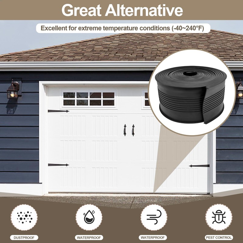 • Premium Quality : In cold weather, hot weather, snow or rain, our long-term garage door bottom seal will remain flexible, even in extreme weather conditions, a tight seal from 40 ° F to 240 ° F,ensures a tight fit with your existing garage door when closed,Keeps your garage door clean, dry and quiet by keeping dust, dirt and rain out.