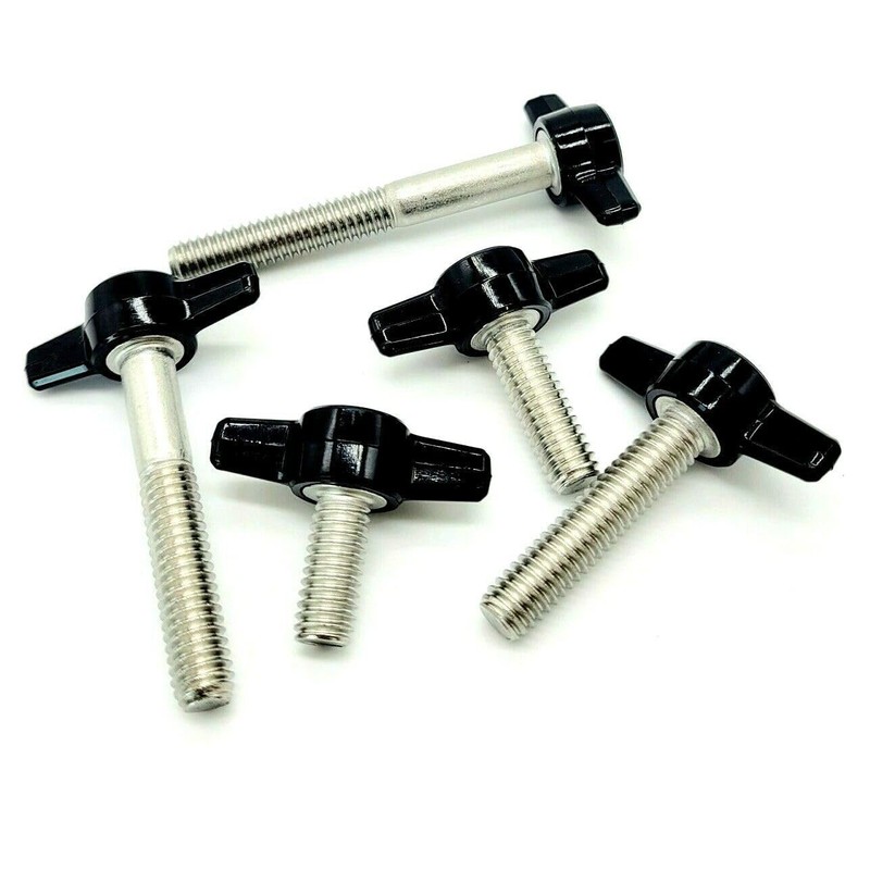 5/16" Thumb Screw Bolts Black Plastic Butterfly Clamping Tee Wing Knob Stainless (Screw Size: 1 1/2", Pack Size: 8 Bolts)