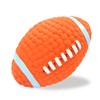 - Our squeaky football dog toy is equipped with a firmly built-in squeaker that emits a pleasant squeak whenever chewed. The sound immediately capture your dog's attention and keep them entertained for hours independently. Safety is of our top priority, allow your furry friends to play with complete confidence.
