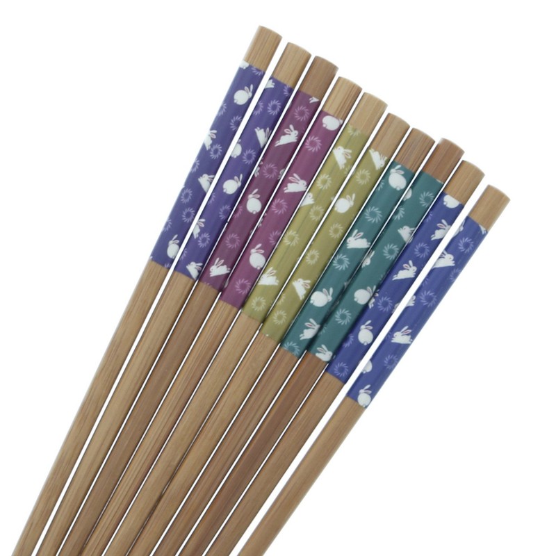 イシダ 日本製 箸 客用 5膳セット すす竹 幸うさぎ ヘッダー 滑り止め加工 23cm