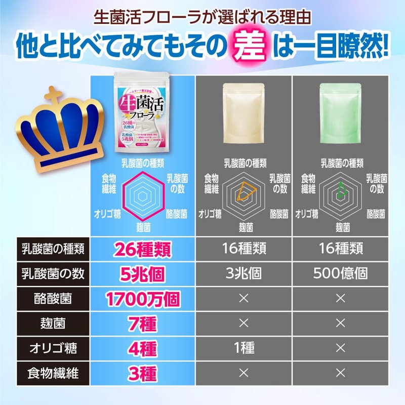 生菌活フローラ 5兆個 26種の乳酸菌+ビフィズス菌+酪酸菌+麹菌+アシドフィルス菌 サプリメント 30日分 (国内生産)