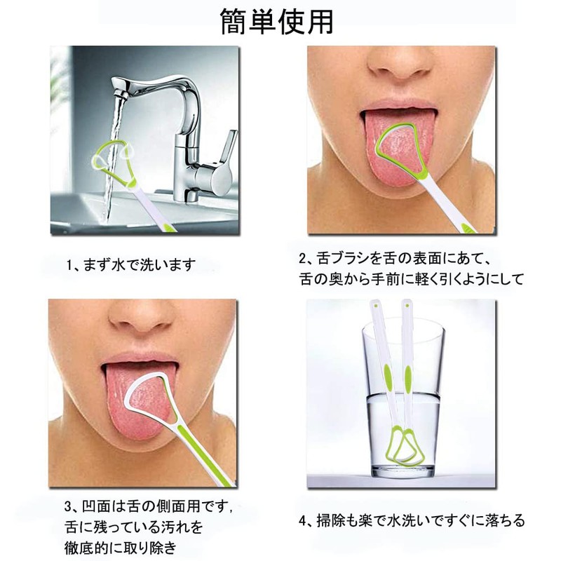 - 【簡単使用】毎日朝晩使います。舌ブラシを舌の表面にあて、舌の奥までシッカリ届くし持ちやすい。必ず舌の奥から手前に軽く引くようにして数回繰り返してください。また、凹面は舌の側面用です。舌に残っている汚れを徹底的に取り除き、息を新鮮に保ちます。口腔ケア、口腔環境改善。