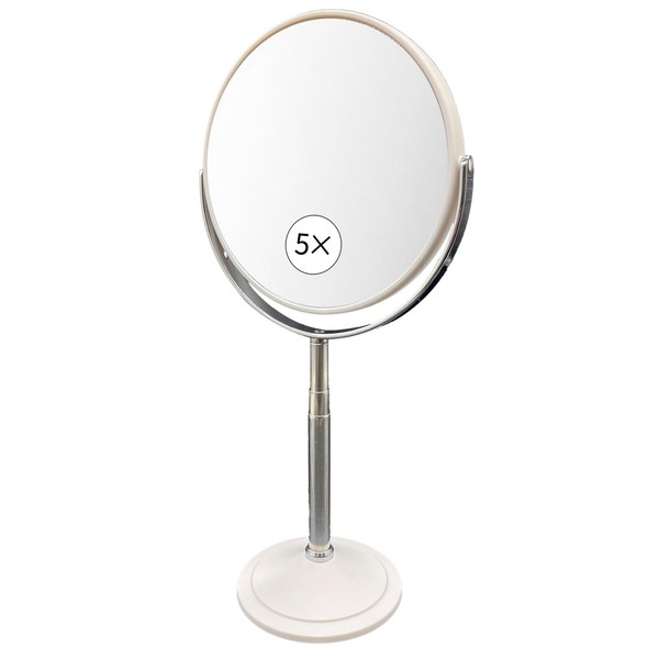 ミラー 卓上 拡大鏡 化粧 メイク 鏡 5倍 老眼 化粧鏡 卓上 手鏡 メイクミラー スタンド スタンド 高さ調整 化粧ミラー 女優鏡 ハリウッド 細部 丸型 ハンド 人気 おしゃれ(5倍拡大鏡・5X) (オフホワイト)【老眼の方向けの鏡】