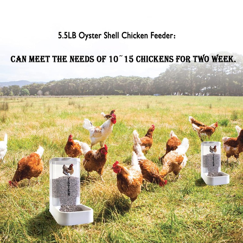 - GRAVITY FILL, DAILY HASSLE-FREE:This oyster shells feeder for chickens, securable in chicken coop or on ground, has an automatic gravity design, constantly refilling eaten crushed oyster shell, eliminating the need to replenish oyster shells every day.