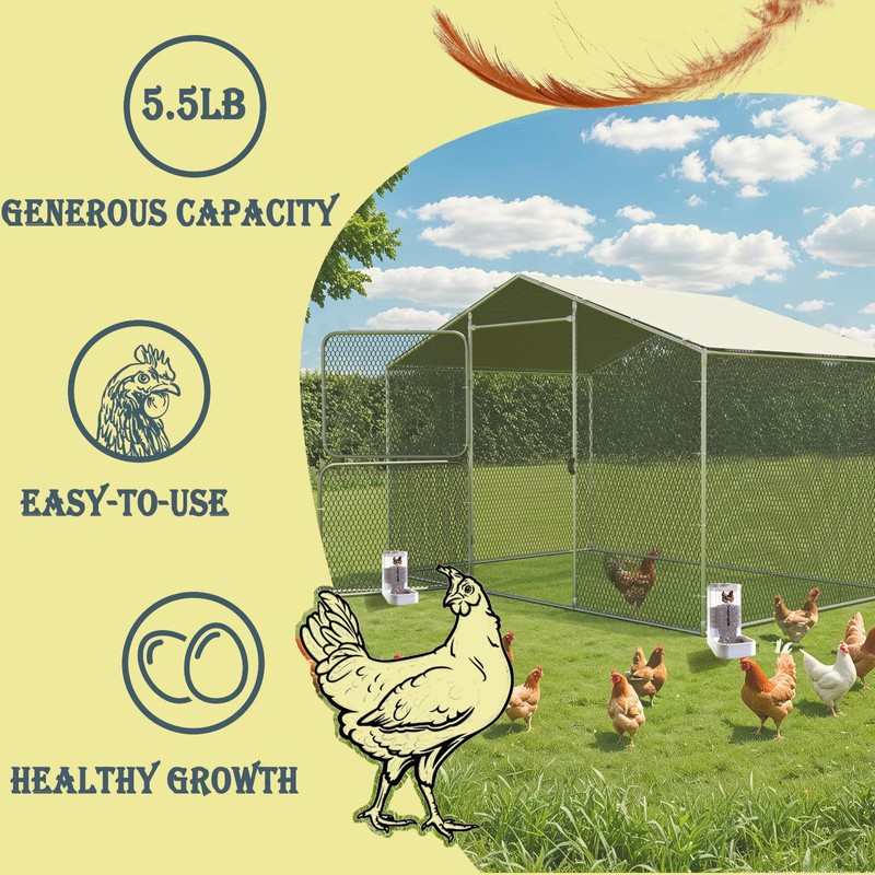 - WIDE RANGE OF USES: Our automatic chicken feeder with lid is suitable for both large chicken farms and small poultry farmers, making it versatile.Helps improve the strength and durability of egg shells, enhancing overall egg quality an essential for your chicken coop must haves.
